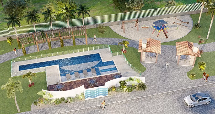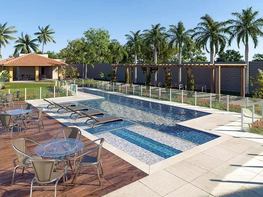 03 Quartos, sendo uma suíte e uma semissuíte, 2 vagas de garagem, Piscina privativao, churrasqueira, varanda, chuveiro e lavabo.