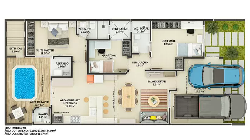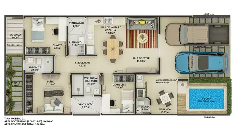 Área Construída: 104,90m²