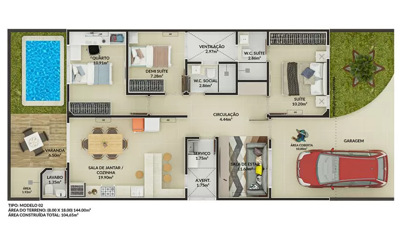 Área Construída: 104,65m²