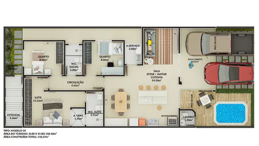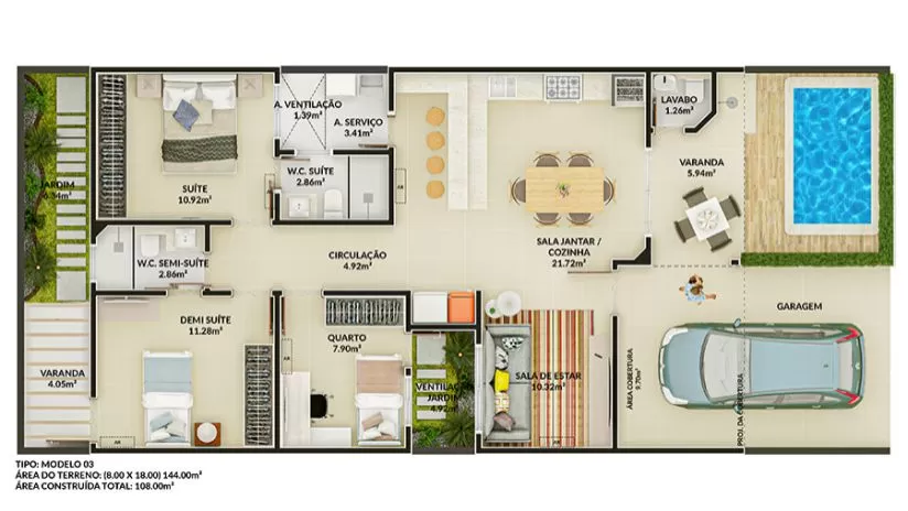 Área Construída: 108,00m²